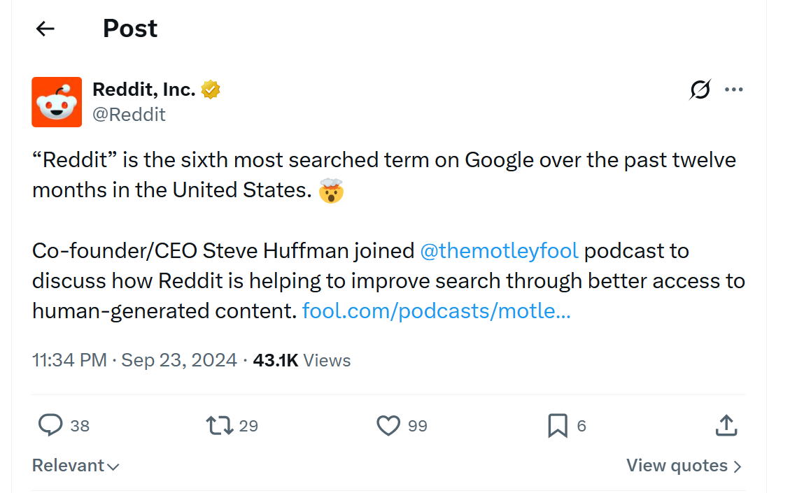 Here's a telling sign of how much this matters: people have been adding the word "reddit" to their Google searches for years now, specifically to bypass polished corporate content and find real human opinions. It became so widespread that Reddit's CEO noted it had become the sixth most Googled word in the United States.