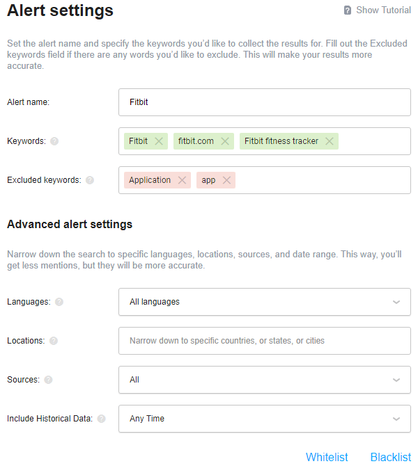 - Add excluded keywords to filter out noise. If you're tracking "notion alternative," you might exclude "food" or "cooking" to skip unrelated results.